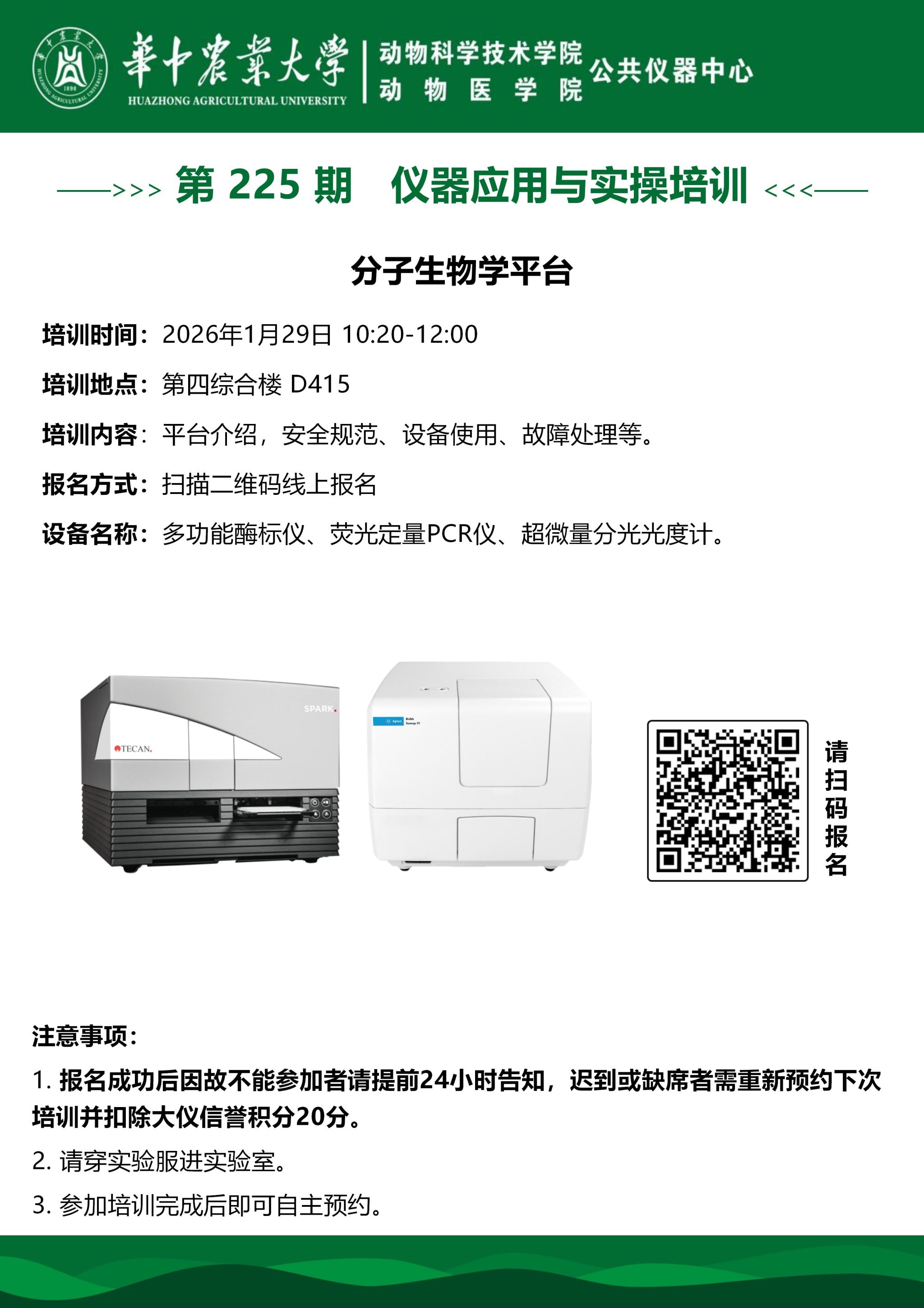 第 225 期 分子生物学平台仪器应用与实操培训